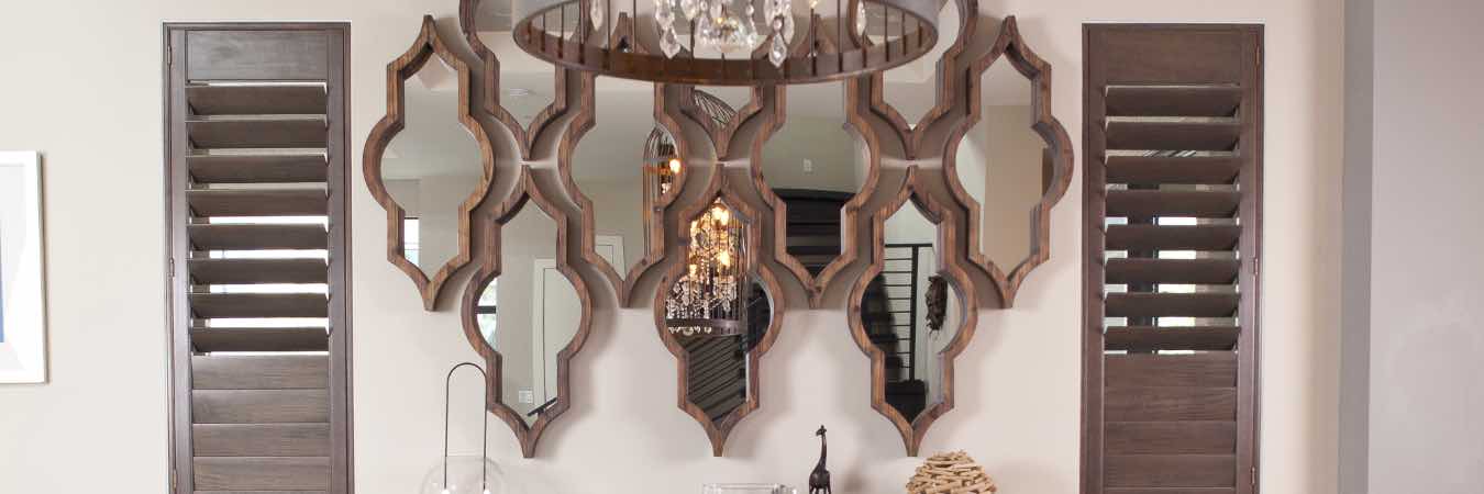 Interior plantation shutters can also be found in a wide variety of lighter shades that harmonize well with most color palettes. Contemporary Polywood® shutters come in three crisp tints of white that harmonize with everything. Hardwood shutters, on the other hand, come in many tints of wood stains and paints should you need something beyond white or decide to match existing wood components in your living space.
