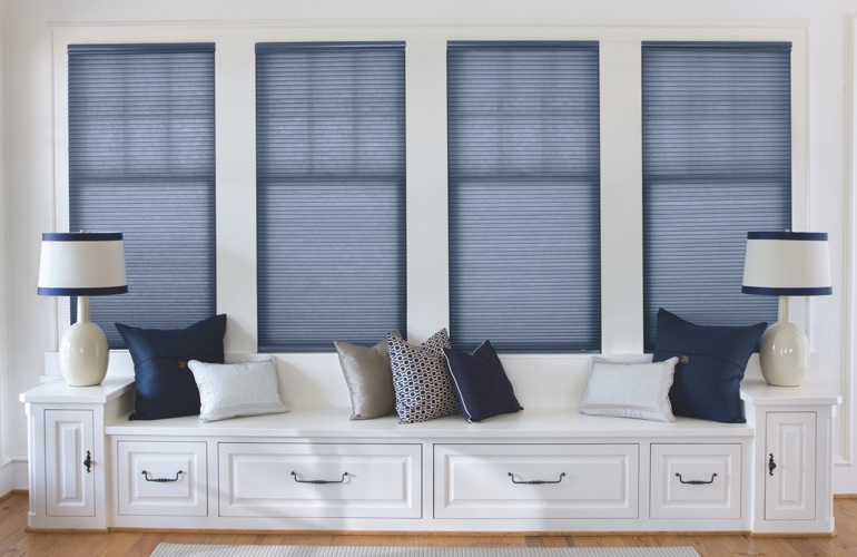 Another great blind upgrade are cellular (or honeycomb) shades. They’re designed to block more heat than normal shades, are a snap to use, and provide a ton of options in the way of colors, patterns, materials and more.