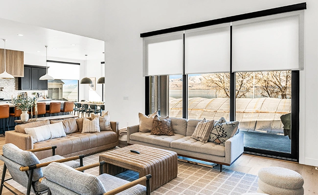 - Oversized: Pick motorized shades to easily cover wide panes of glass while maintaining clean lines and a current feel.